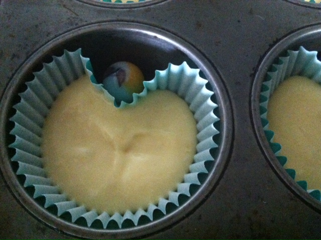 Now, it looks easy, and it is, but here are a few tips. First of all, put the batter in your patty pans before you add the marble. I found this out through trial and error.