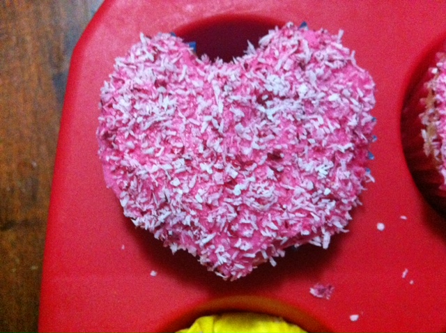 Then I iced the hearts with Rose Pink Icing and sprinkled on the coconut that I coloured pink with the food colouring.