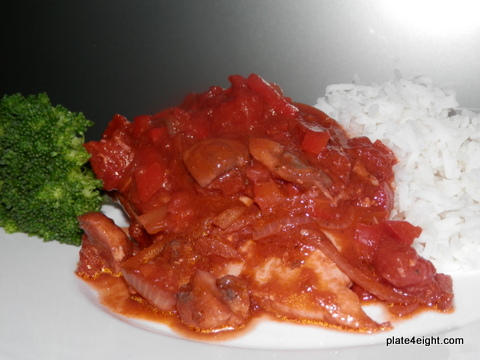 I have always loved Chicken Cacciatore, but Mr8 and the kids are not big fans of olives. Not that I love olives myself, but I don’t mind them in dishes where they blend in with the other flavours. So when I found this quick and easy recipe on the Coles website (you never know where you will find a great recipe) I decided to try it out on the family and just omit the olives. I made a few small changes, using chicken breasts instead of chicken maryland, and I used a can of diced tomatoes instead of fresh tomatoes because that is what I had in my pantry and I didn’t want to make another trip to the shops. I think the canned tomatoes gave the dish more sauce, which keeps the kids happy. The verdict was a big thumbs up from all 8 of us, with all of the kids asking for seconds. The mushrooms are quartered, so it was easy to avoid dishing them up to the kids who don’t like them, and easy for them to pick out the strays. More mushrooms for me! While I love cooking, weeknights are pretty manic around here with dancing lessons, homework and violin practice etc., so I need great recipes to fall back on that are quick and will be eaten by everyone, and this recipe ticks all of the boxes. I served this dish with rice and broccoli, but it would be beautiful served over creamy mashed potatoes.