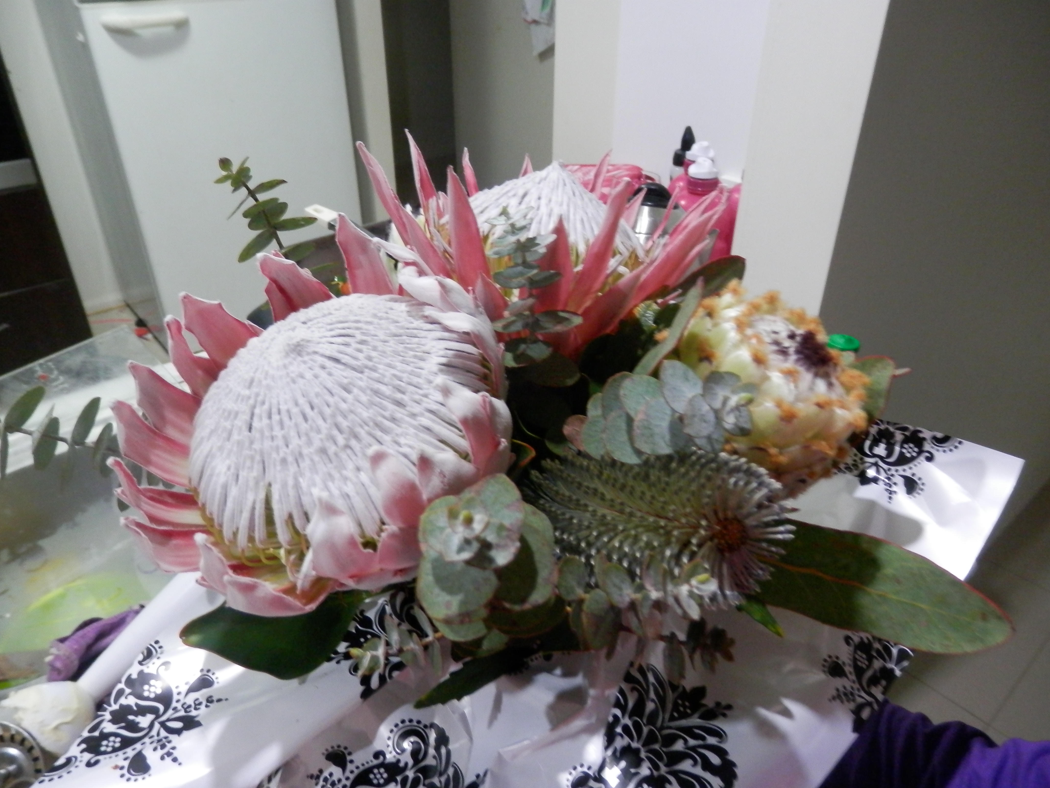 All in all the party was a success. Apparently the girls all wrote about the party in their journals at school Monday morning. It was lovely to be able to let Miss 10 experience a slumber party, sleepovers at someone else’s place are a bit tricky when you have an insulin pump to manage. There is another little girl in her class who is also a Type 1 Diabetic, and she has the same pump, so it was lovely to be able to invite her to stay over. When she got into the car the next morning she told her mum “It was the best night of my life!”. And in case you missed them on facebook, these are the lovely Proteas she gave me as a thank-you when she arrived at the party.